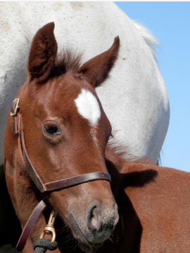 When Rezur was three months old, his mother got sick from bacteria at the breeding farm. She died within five days and a few days later, he was colicky too. They did surgery and took 13 feet of his intestines out. He was fine for ten days, and then he was colicky again. They gave him a 10% chance to survive a second colic surgery. The Musicks went ahead with the second colic surgery, and another hernia surgery not long after. HE SURVIVED!